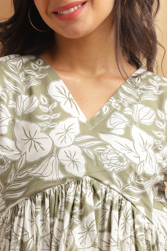 Olive Green Alia cut anarkali Coord set (YM0033)